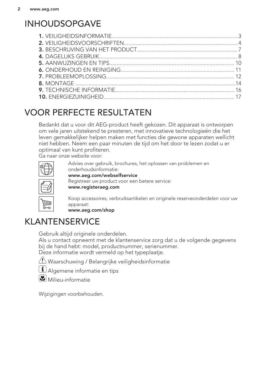 SERVICE APRÈS-VENTE N'utilisez que des pièces de rechange d'origine. Avant de contacter le service, assurez-vous de disposer des informations suivantes : Modèle, PNC, numéro de série. Vous trouverez ces informations sur la plaque signalétique. Avertissement/Attention : consignes de sécurité. Informations générales et conseils. Informations en matière de protection de l'environnement. Sous réserve de modifications.