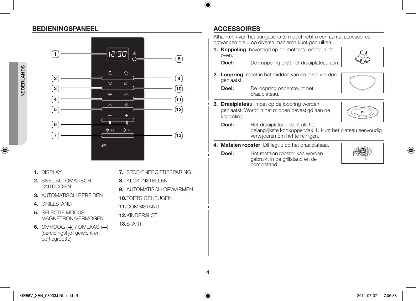 GE86V_XEN_03933J-NL.indd 2 2011-07-07 7:06:38 Oven Als u een gerecht wilt grillen.