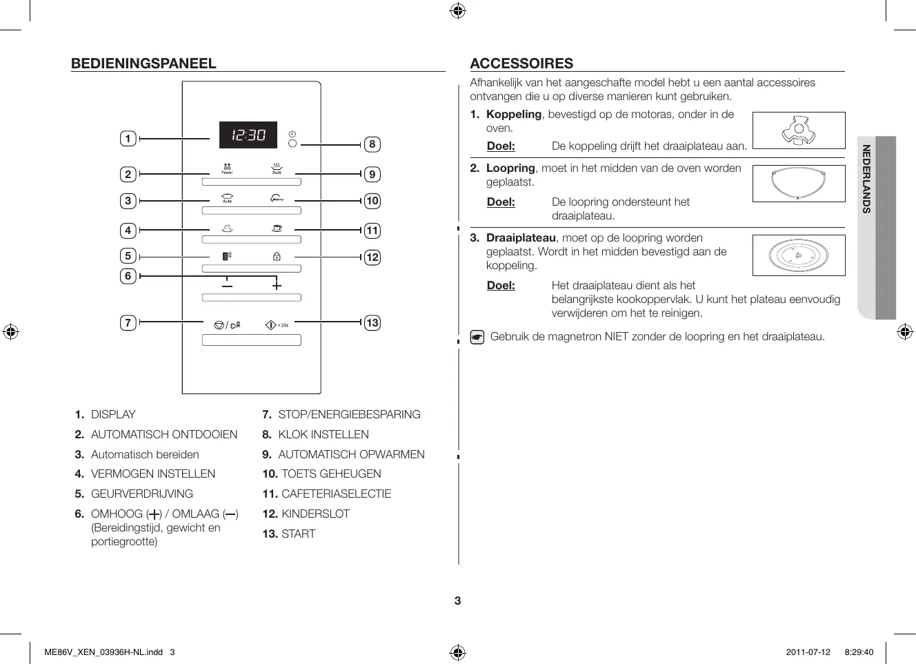 ME86V_XEN_03936H-NL.indd 2 2011-07-12 8:29:40 Bedieningspaneel Accessoires Afhankelijk van het aangeschafte model hebt u een aantal accessoires ontvangen die u op diverse manieren kunt gebruiken.