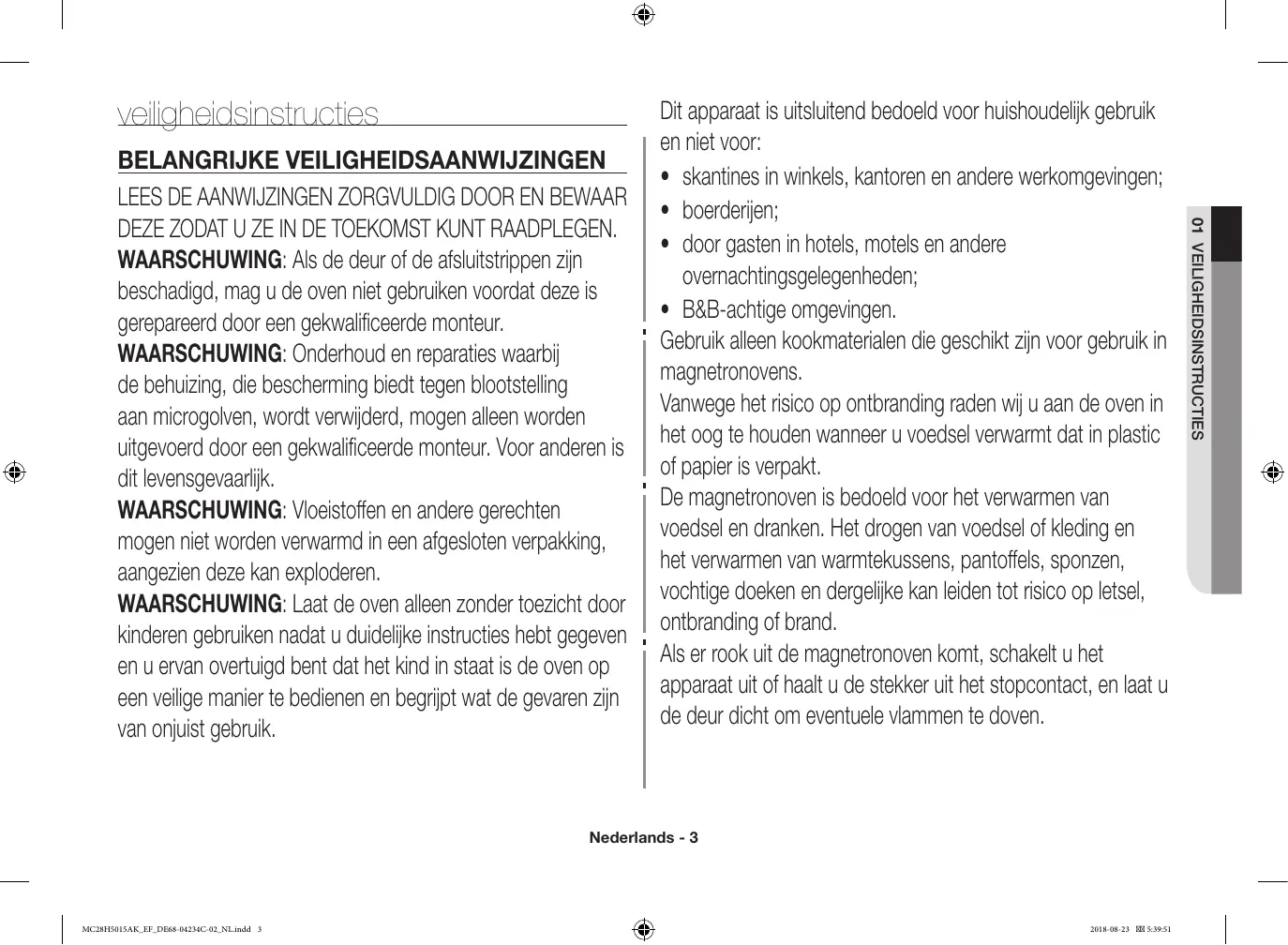 01 VEILIGHEIDSINSTRUCTIES Waarschuwing magnetron