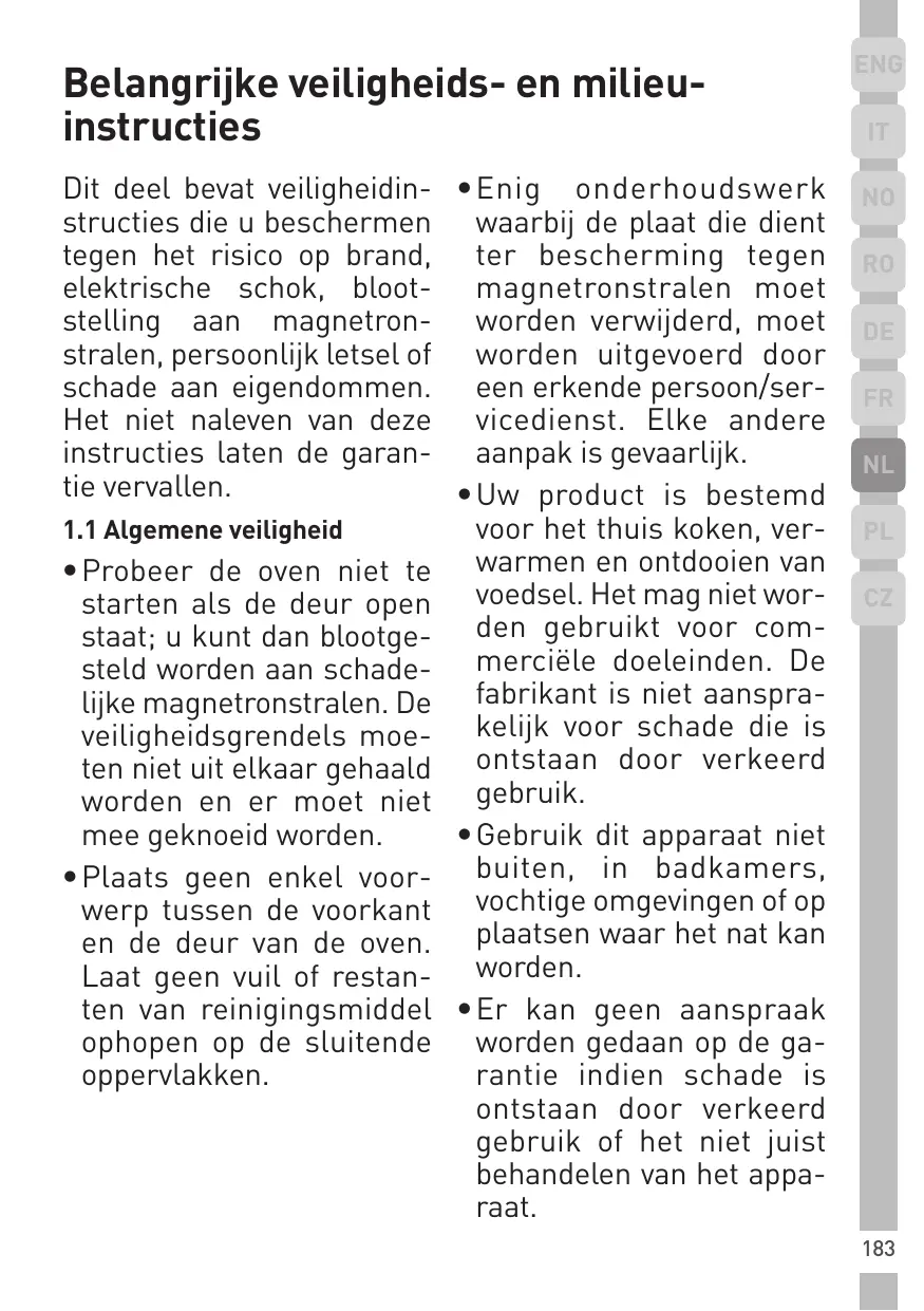 ENG IT NO RO DE FR NL PL CZ Remarque