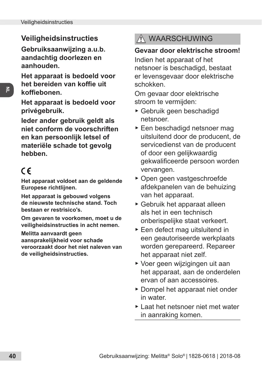 Gebruiksaanwijzing: Melitta® Solo® | 1828-0618 | 2018-08