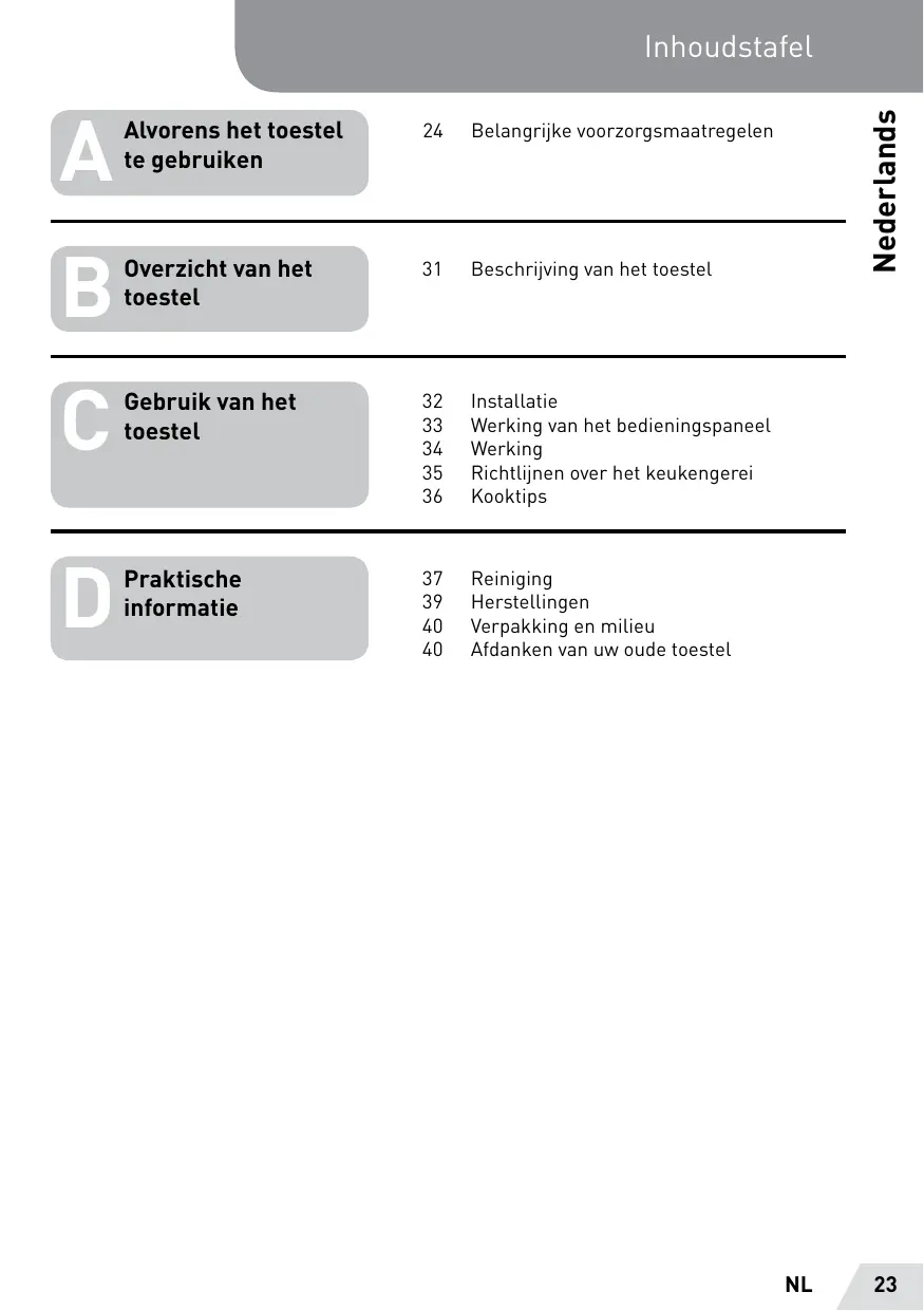 Reiniging Herstellingen Verpakking en milieu Afdanken van uw oude toestel Nederlands Inhoudstafel