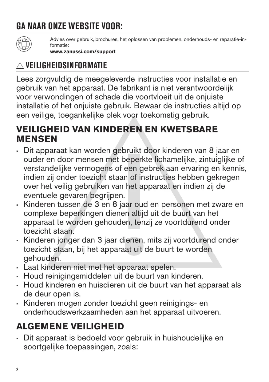 VEILIGHEID VAN KINDEREN EN KWETSBARE MENSEN Dit apparaat kan worden gebruikt door kinderen van 8 jaar en ouder en door mensen met beperkte lichamelijke, zintuiglijke of verstandelijke vermogens of een gebrek aan ervaring en kennis, indien zij onder toezicht staan of instructies hebben gekregen over het veilig gebruiken van het apparaat en indien zij de eventuele gevaren begrijpen.