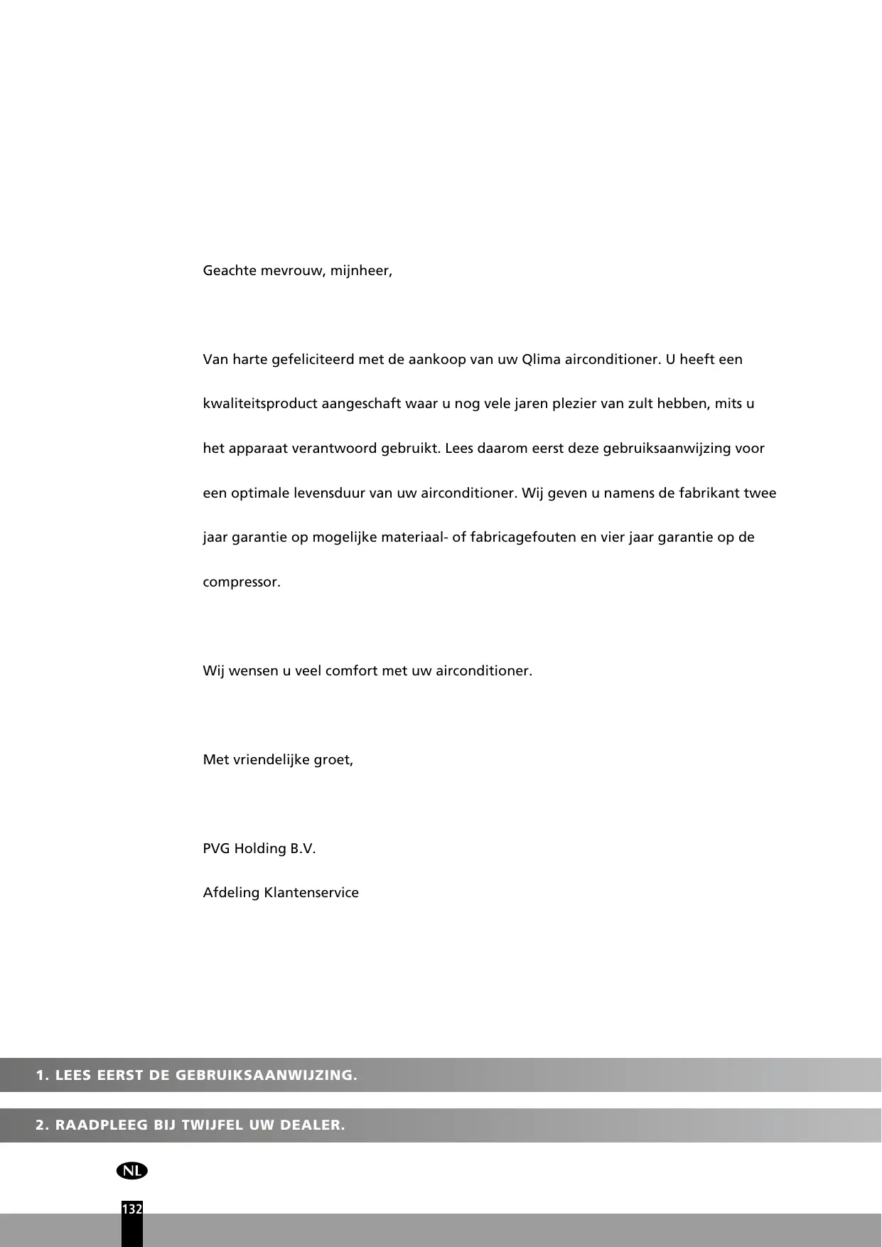 (Climatisation) et FAN (Circulation d’air). Ne pas jeter des appareils électriques avec les déchets managers municipaux non triés. Utiliser des équipements de collecte séparés. Contacter votre gouvernement local pour toute information concernant les systèmes de collecte disponibles. Si les appareils électriques sont jetés sur des sites d’enfouissement des déchets ou dans déchetteries, des substances dangereuses risquent de pénétrer dans les nappes phréatiques et entrer dans la chaîne alimentaire et peuvent poser des risques à votre santé et bien-être. Lors du remplacement d’appareils électriques usagés par des appareils neufs, le revendeur est tenu de reprendre votre vieil appareil pour recyclage au moins gratuitement. Ne jetez pas les piles dans le feu car elles pourraient exploser ou rejeter des liquides dangereux. Si vous remplacez ou si vous détruisez la télécommande, retirez les piles et jetez-les conformément aux lois en vigueur car elles nuisent à l’environnement. Environnement: Cet appareil contient un gaz fluoré à effet de serre dont l’utilisation est régie par le protocole de Kyoto. Toute réparation ou démontage de cet appareil doit exclusivement être effectué par un personnel qualifié. Cet appareil contient du gaz réfrigérant R410A. Voir quantité dans le tableau ci-dessus. Ne diffusez pas de gaz R410A dans l’atmosphère: R410A est un gaz fluoré à effet de serre à potentiel de réchauffement global (Global Warming Potential - GWP) = 2088. Internet: Nous vous informons que les notices d’utilisation et/ou d’installation sont disponibles sur notre site www.qlima.com