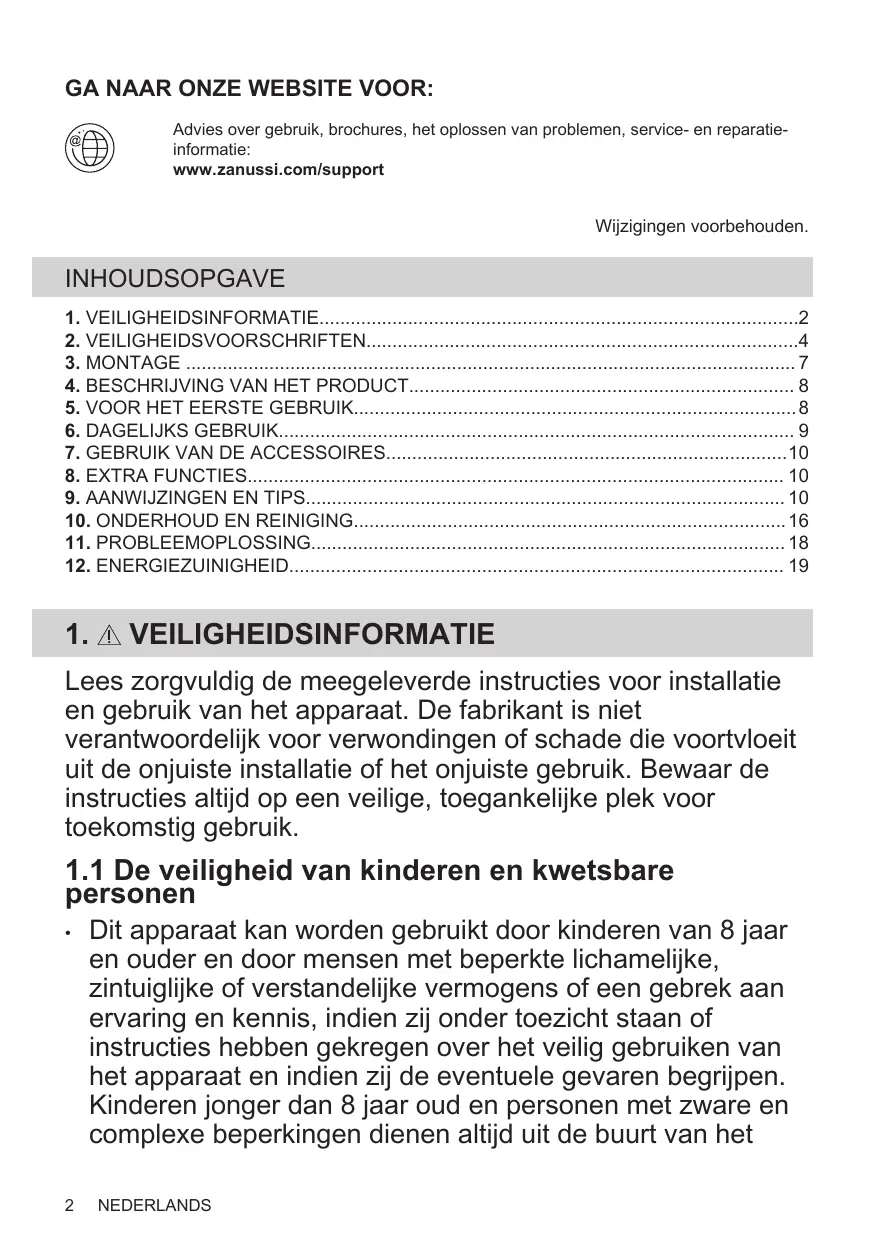 GA NAAR ONZE WEBSITE VOOR: Advies over gebruik, brochures, het oplossen van problemen, service- en reparatieinformatie: www.zanussi.com/support