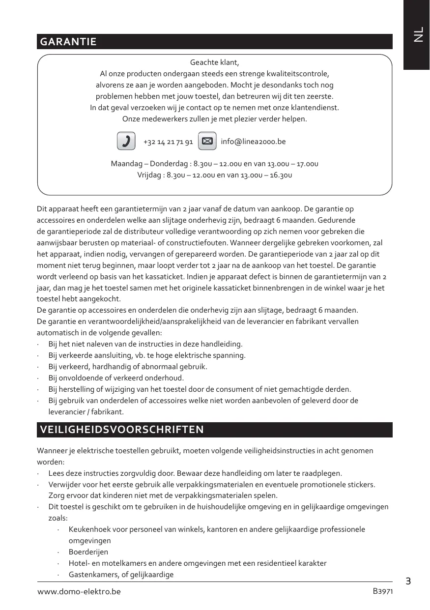 GEBRUIKSAANWIJZING B3971 DOMO