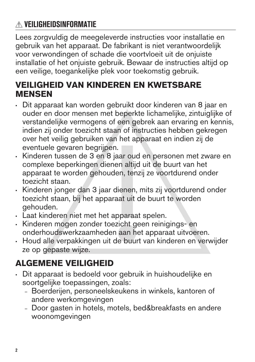 DE BINNENKANT SCHOONMAKEN Voordat u het apparaat voor de eerste keer gebruikt, wast u de binnenkant en de interne accessoires met lauwwarm water en een beetje neutrale zeep om de typische geur van een nieuw product weg te nemen. Droog daarna grondig af. SÉCURITÉ DES ENFANTS ET DES PERSONNES VULNÉRABLES •