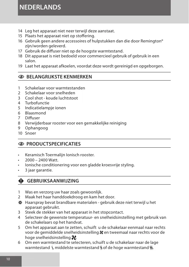 D5222DS - REMINGTON - Gratis gebruiksaanwijzing en handleiding