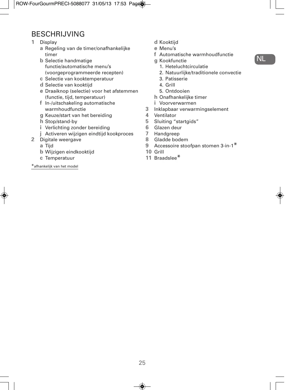 GEBRUIKSAANWIJZING GOURMET XL OC7868 30 ROWENTA