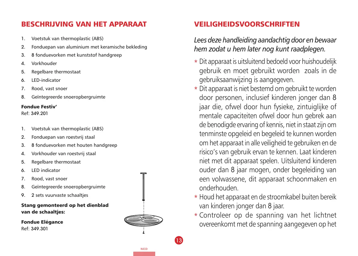 NB : si vous n’avez pas d’autres sources de chaleur, vous pouvez toutefois utiliser votre appareil pour la préparation de la fondue Savoyarde.