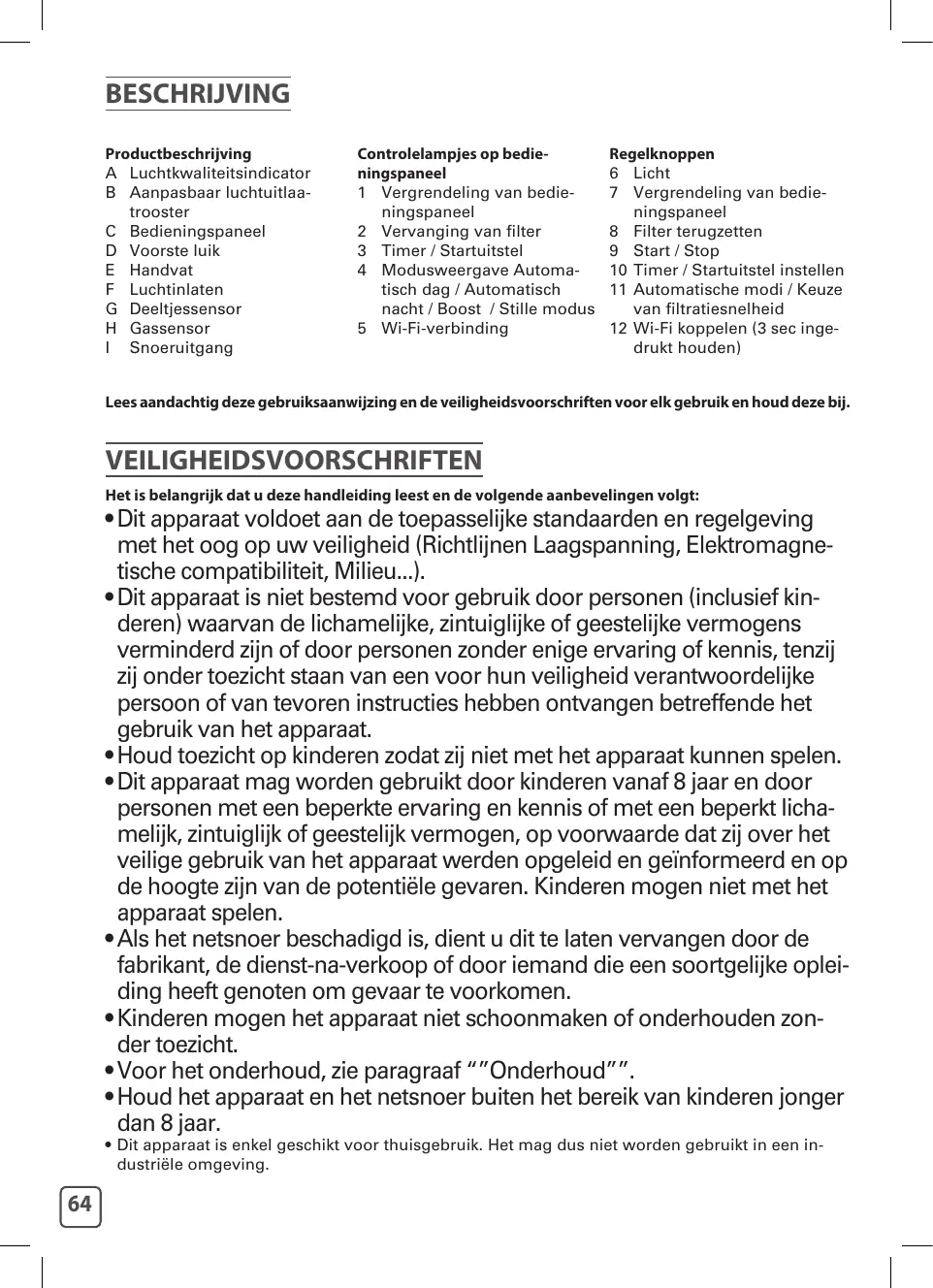 6 Luminosité 7 Verrouillage du panneau de contrôle 8 Réinitialisation du filtre 9 Marche/Arrêt 10 Réglage de la Minuterie/Démarrage différé 11 Sélection des Modes automatiques/Vitesse de filtration 12 Bouton de connexion Wi-Fi (à maintenir pendant 3 secondes) Lisez attentivement le mode d’emploi ainsi que les consignes de sécurité avant toute utilisation et conservez ce mode d’emploi.