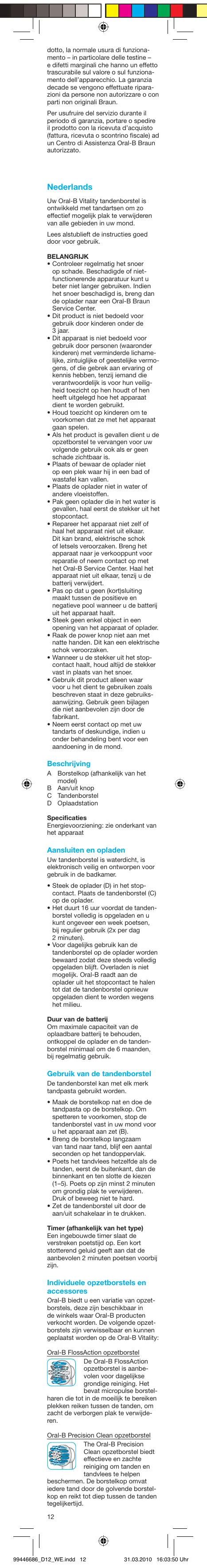 GEBRUIKSAANWIJZING ORL-B VITLITY ORAL-B