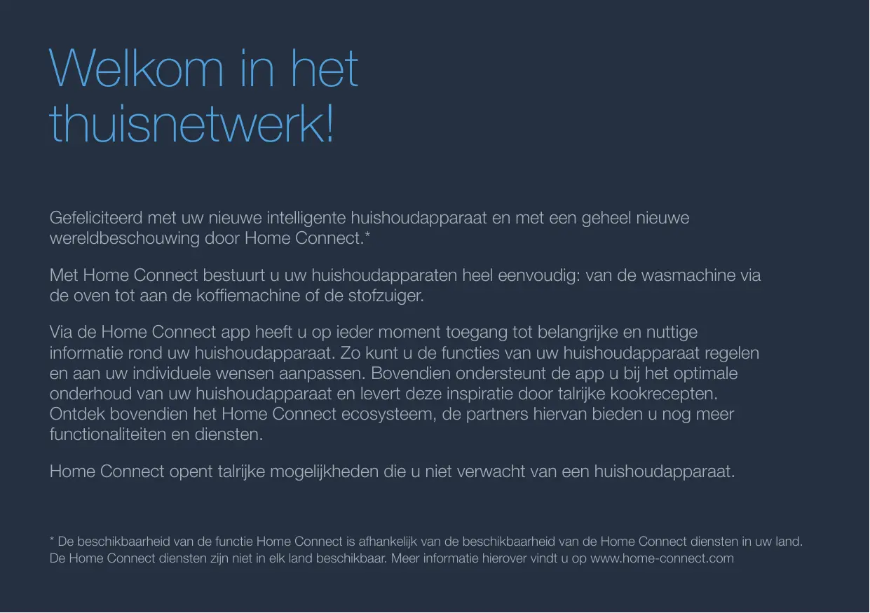 électroménager en toute sécurité avec la fonction Home Connect, veuillez tenir compte des consignes de sécurité figurant dans le mode d’emploi de votre appareil.