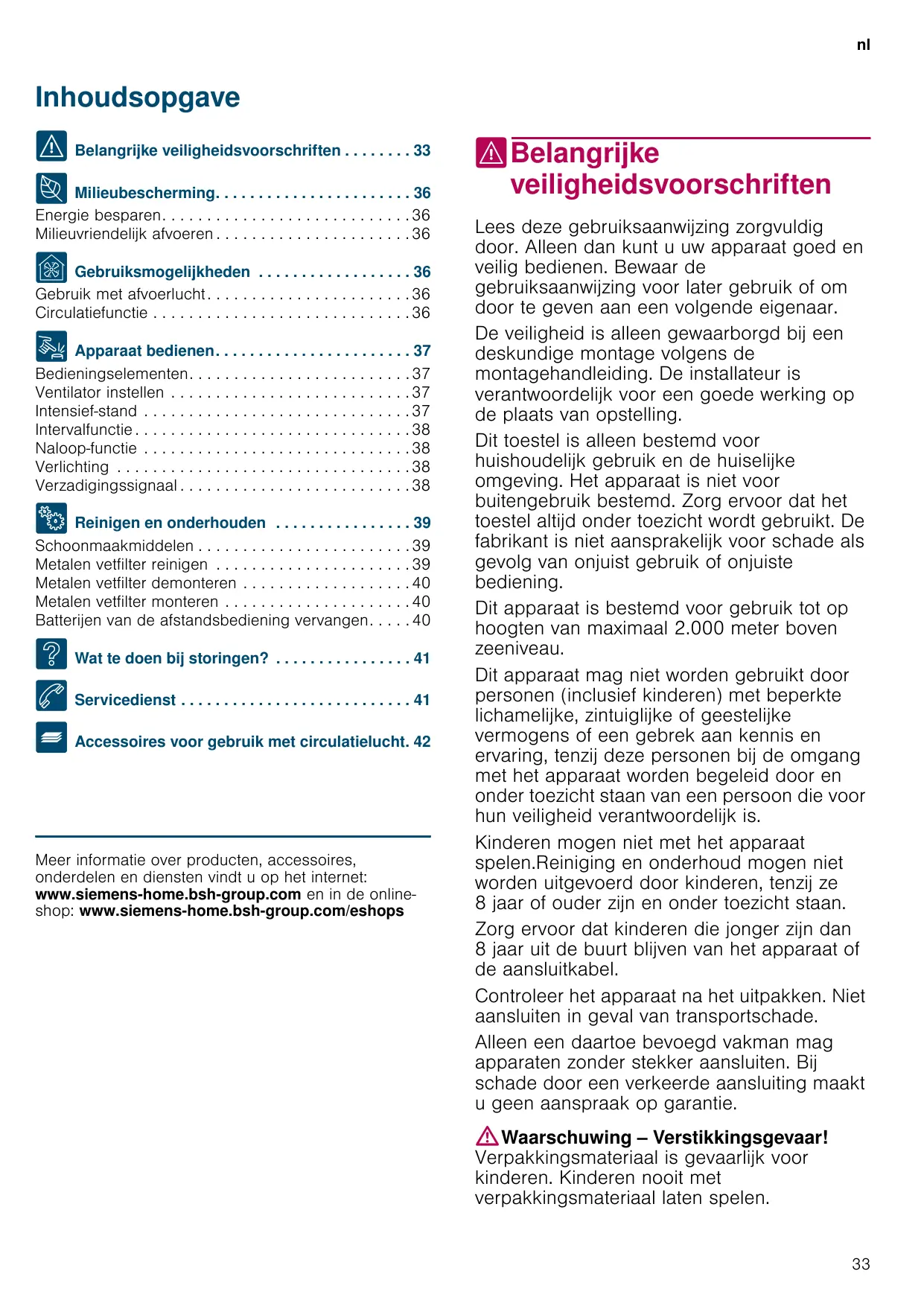 3 Wat te doen bij storingen? . . . . . . . . . . . . . . . . 41 4 Servicedienst . . . . . . . . . . . . . . . . . . . . . . . . . . . 41 _ Accessoires voor gebruik met circulatielucht. 42