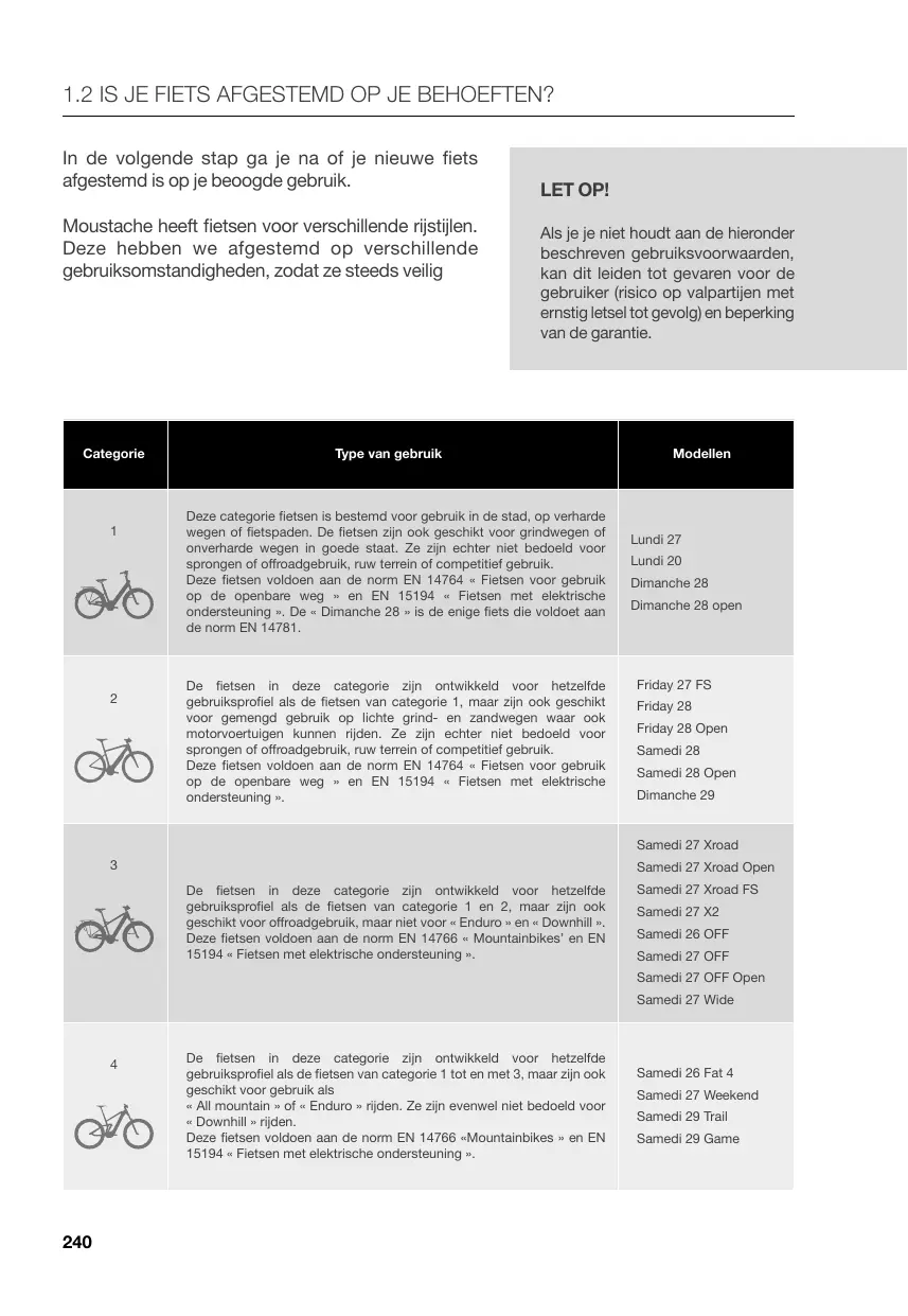 Lees deze handleiding zorgvuldig voordat je de fiets voor het eerst gezruikt en bewaar deze zodate je hem ook later nog kut raadplegen. Voor de afstelling en het onderhoud van bepaalde onderdelen, raadpleeg je de instructies op de Moustache-website of vraag je de dealer om advies.