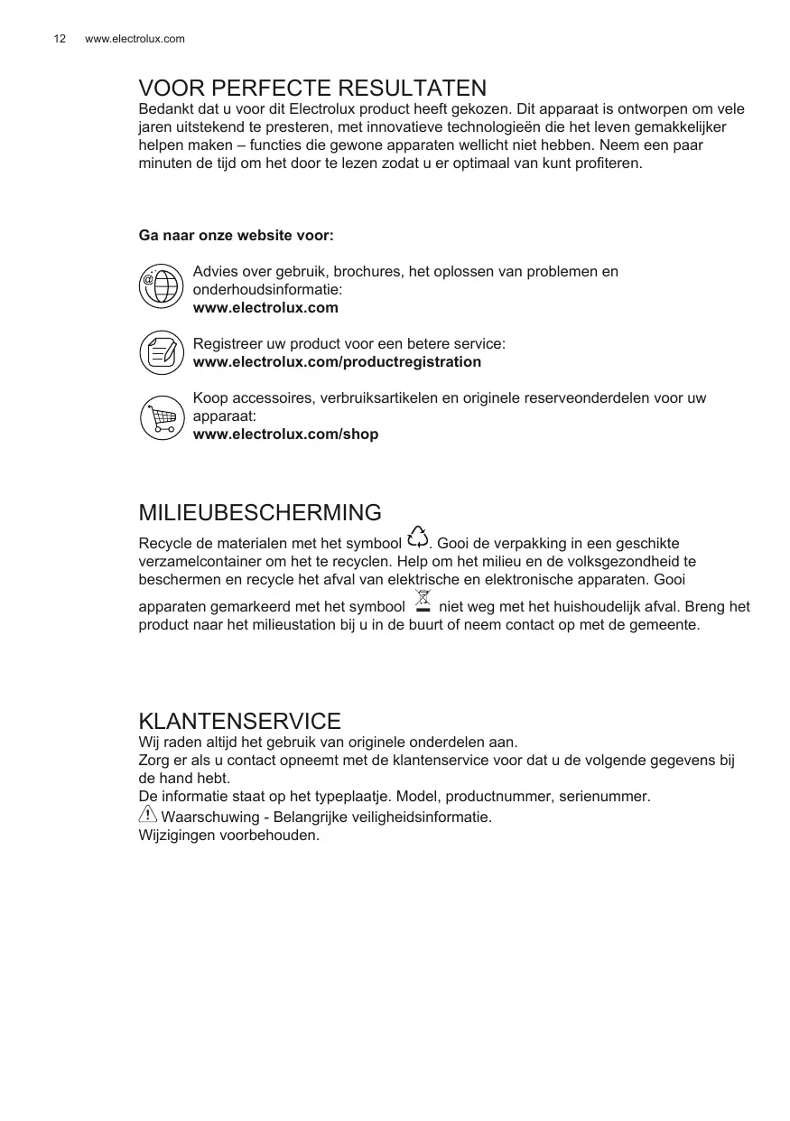 Enregistrer votre produit pour obtenir un meilleur service : www.electrolux.com/productregistration Acheter des accessoires, consommables et pièces de rechange d’origine pour votre appareil : www.electrolux.com/shop