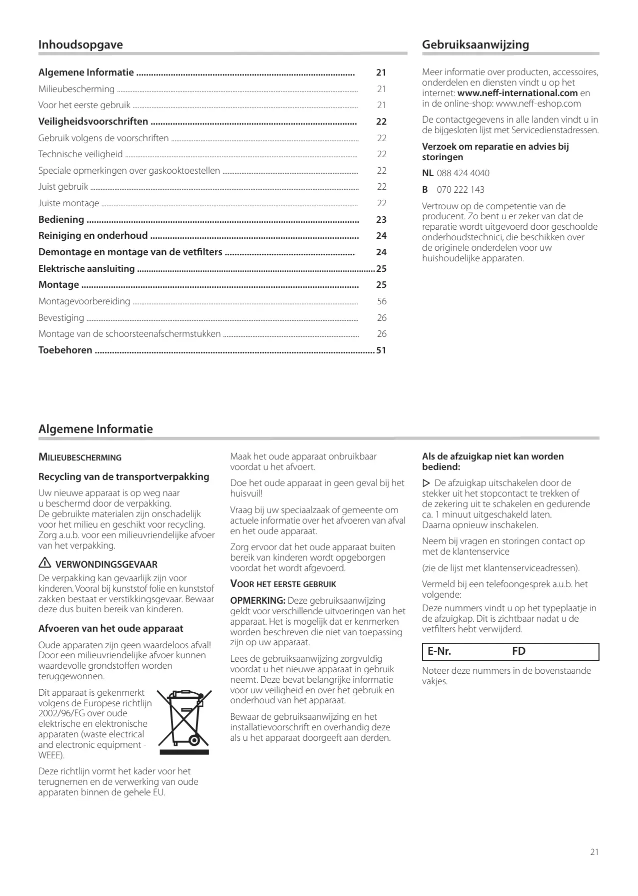 [nl] Gebruiksaanwijzing en installatievoorschrift 21 [it] Istruzioni per l’uso e montaggio