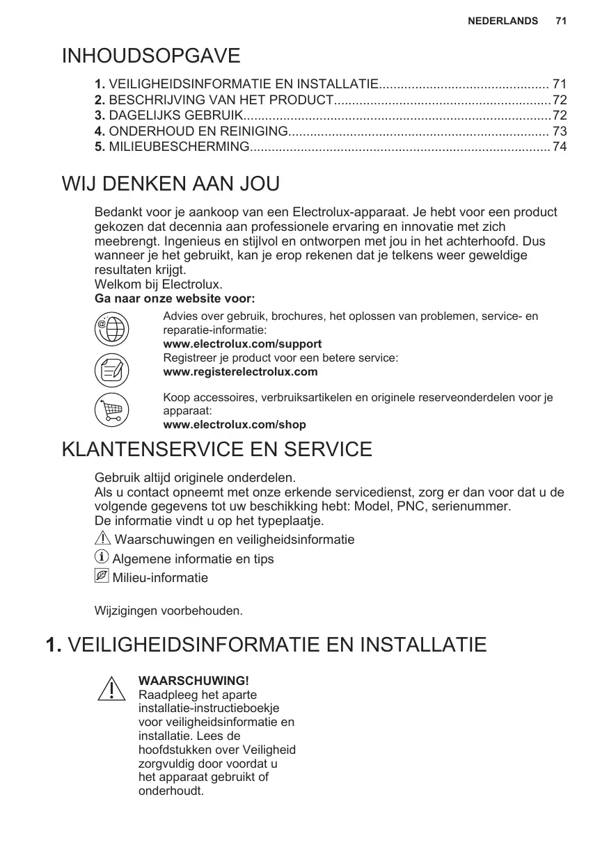 Avant de contacter notre centre de service agréé, assurez-vous de disposer des informations suivantes : Modèle, PNC, numéro de série. Ces informations figurent sur la plaque signalétique. Avertissement/Consignes de sécurité Informations générales et conseils Informations environnementales Sous réserve de modifications.