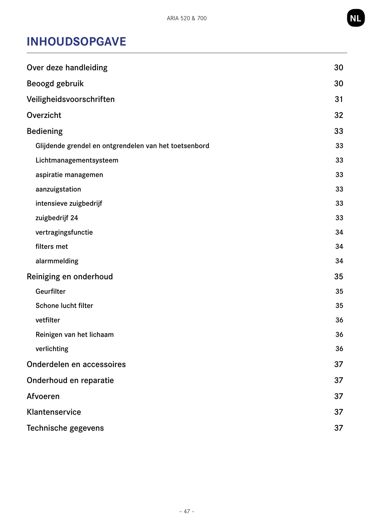 De fabrikant kan niet aansprakelijk worden gesteld voor mogelijke schade als gevolg van een onjuiste installatie en onjuist, onzorgvuldig of onredelijk gebruik van het apparaat. De afzuigkap kan niet tegen belasting. ZZNiet op de afzuigkap klimmen, staan of zitten. ZZPlaats geen zware voorwerpen op de afzuigkap. Kinderen van 8 jaar of ouder en personen met fysieke, zintuiglijke of verstandelijke beperkingen of met beperkte ervaring of kennis mogen het apparaat niet gebruiken of reinigen, uitgezonderd indien ze toezicht hebben van of worden geïnstrueerd door een persoon die verantwoordelijk is voor hun veiligheid. Kinderen onder 8 jaar mogen het apparaat niet gebruiken of reinigen, zelfs niet onder toezicht. Dit apparaat is geen speelgoed. ZZHoud kinderen weg van het apparaat en het verpakkingsmateriaal. ZZLaat geen kinderen bij het apparaat zonder toezicht. ZZLaat kinderen niet met het apparaat spelen. ZZLees