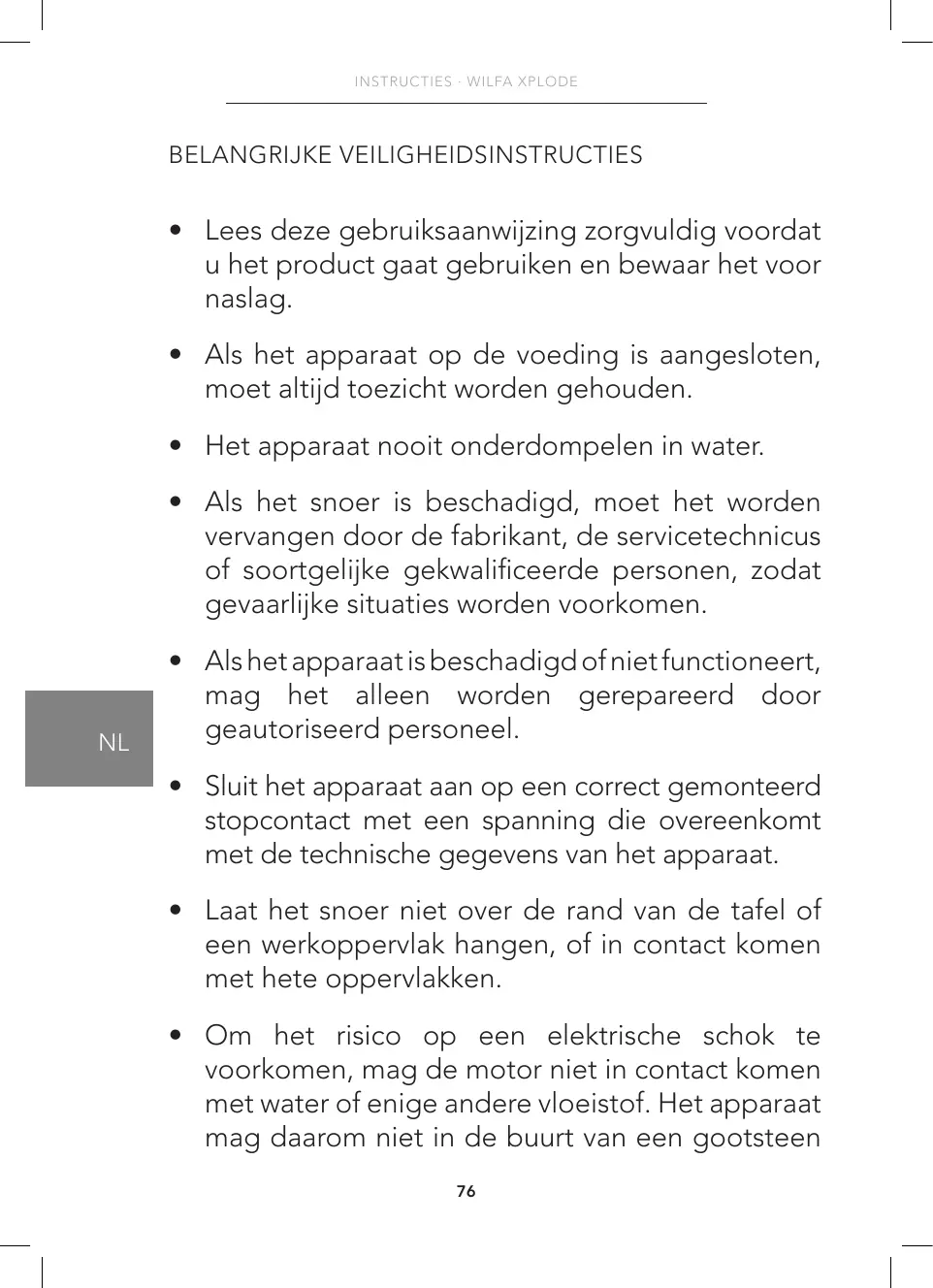 GEBRUIKSAANWIJZING BLP-1200 WILFA