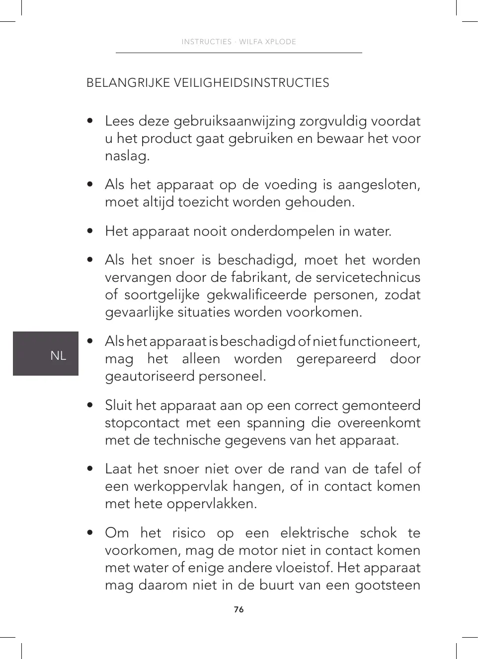 GEBRUIKSAANWIJZING BBLSP-1800 WILFA