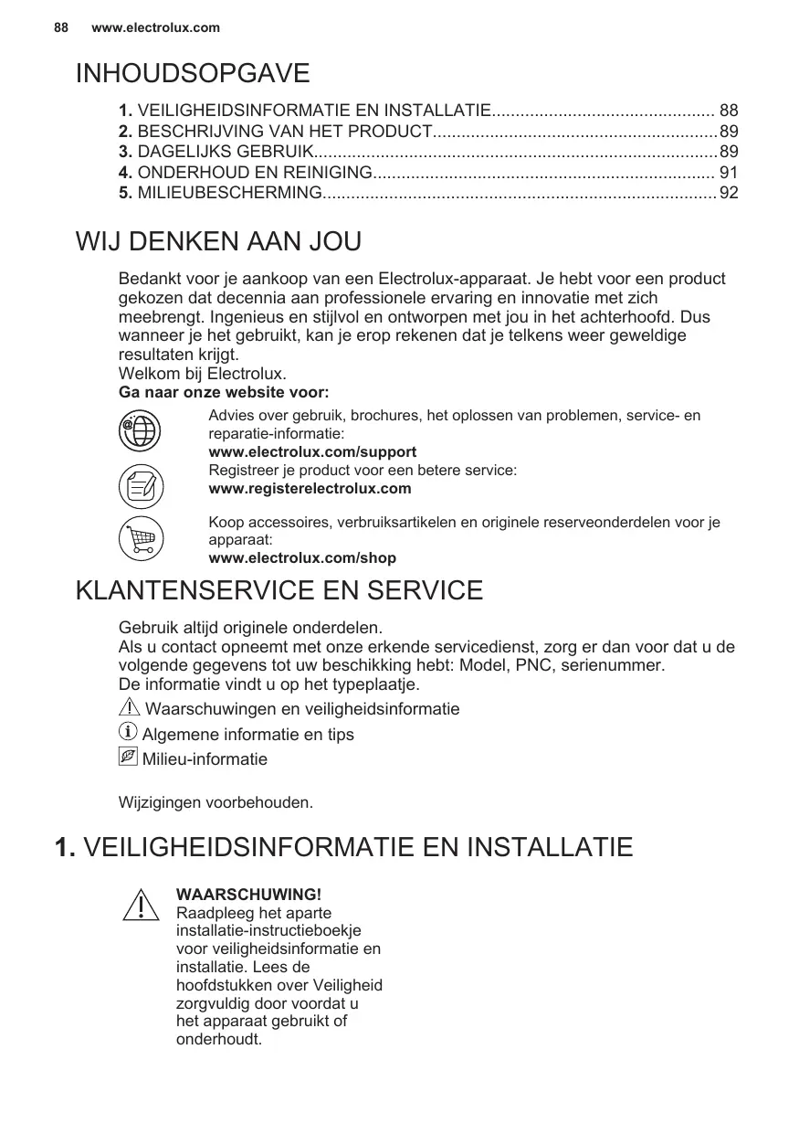 Avant de contacter notre centre de service agréé, assurez-vous de disposer des informations suivantes : Modèle, PNC, numéro de série. Ces informations figurent sur la plaque signalétique. Avertissement/Consignes de sécurité Informations générales et conseils Informations environnementales Sous réserve de modifications.