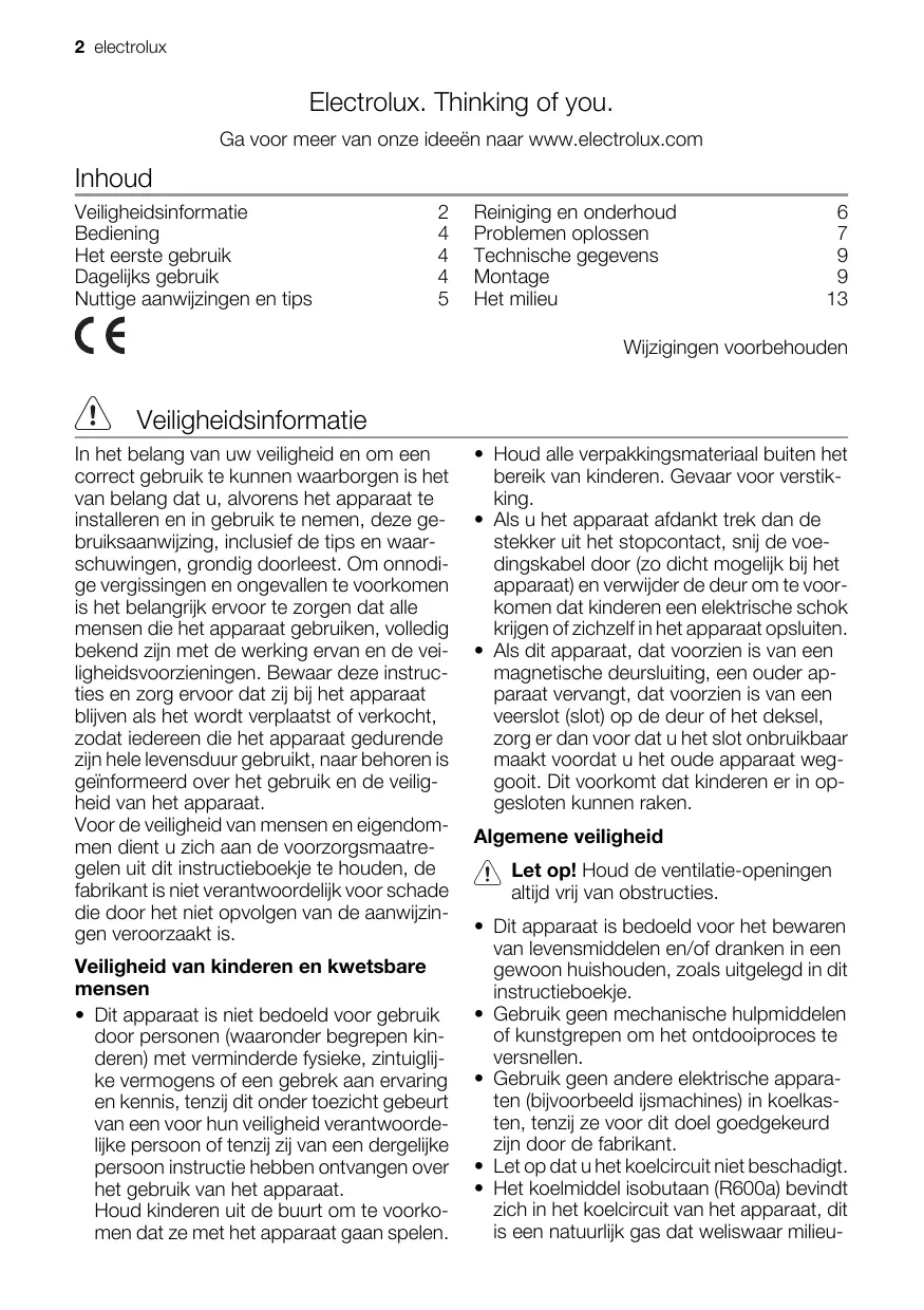 Download de handleiding voor uw Koelkast in PDF-formaat gratis! Vind uw handleiding ERN16510 - ELECTROLUX en neem uw elektronisch apparaat weer in handen. Op deze pagina staan alle documenten die nodig zijn voor het gebruik van uw apparaat. ERN16510 van het merk ELECTROLUX.