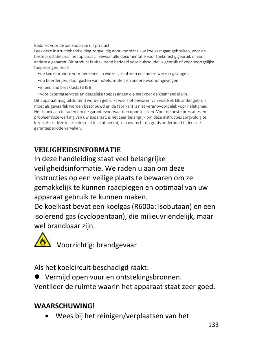 - pour les services de restauration et des applications similaires non destinées à une vente au détail. Cet appareil doit être utilisé uniquement à des fins de conservation d'aliments, toute autre utilisation est considérée comme dangereuse et le fabricant ne sera pas responsable de toute omission. De plus, il est recommandé de prendre note des conditions de garantie. Pour obtenir la meilleure performance possible et un fonctionnement sans problème de votre appareil, il est très important de lire attentivement ces instructions. Tout non-respect de ces instructions peut annuler votre droit à des services gratuits pendant la période de garantie.
