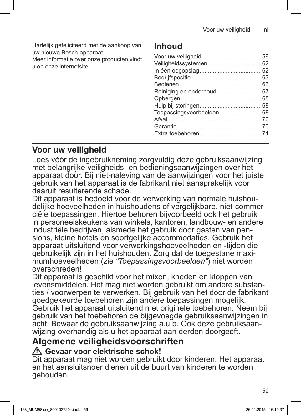 Hartelik gefeliciteerd met de aankoop van Inhoud uw nieuwe Bosch-apparaat.