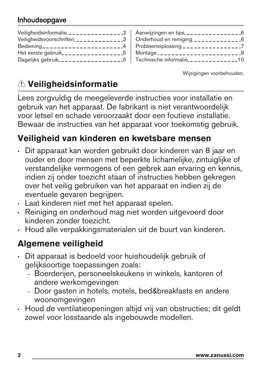 Inhoudsopgave Veiligheidsinformatie Veiligheidsvoorschriften Bediening Het eerste gebruik Dagelijks gebruik