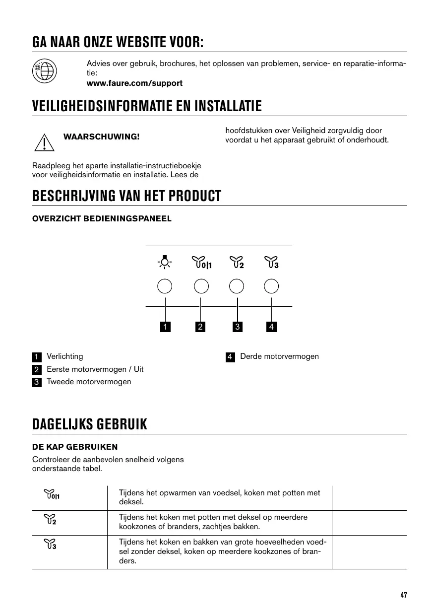 GEBRUIKSAANWIJZING FFV316K FAURE