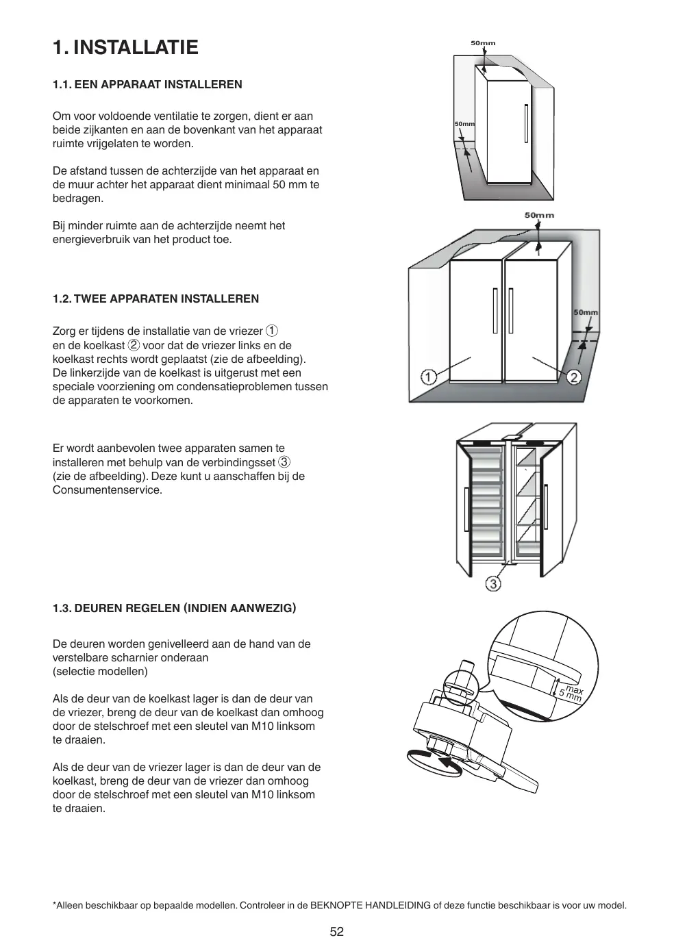 1.1. EEN APPARAAT INSTALLEREN 52 1.2. TWEE APPARATEN INSTALLEREN 52 1.3. DEUREN REGELEN (INDIEN AANWEZIG) 52