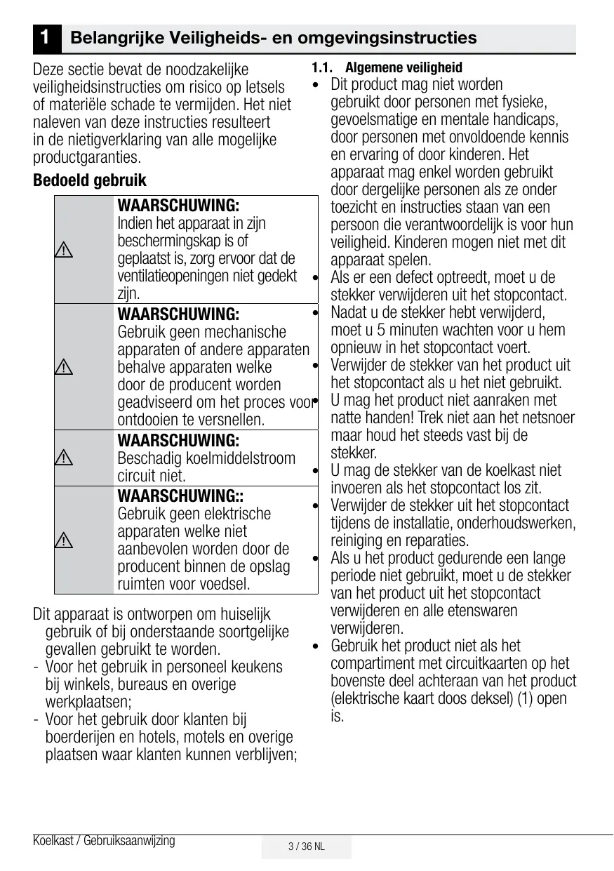3 / 36 NL Instructies voor de veiligheid en het milieu t