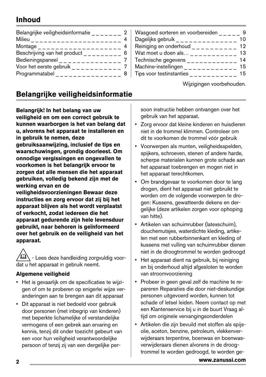 Cet appareil peut être utilisé pour tout le linge dont l'étiquette indique qu'il peut être séché en sèche-linge. www.zanussi.com