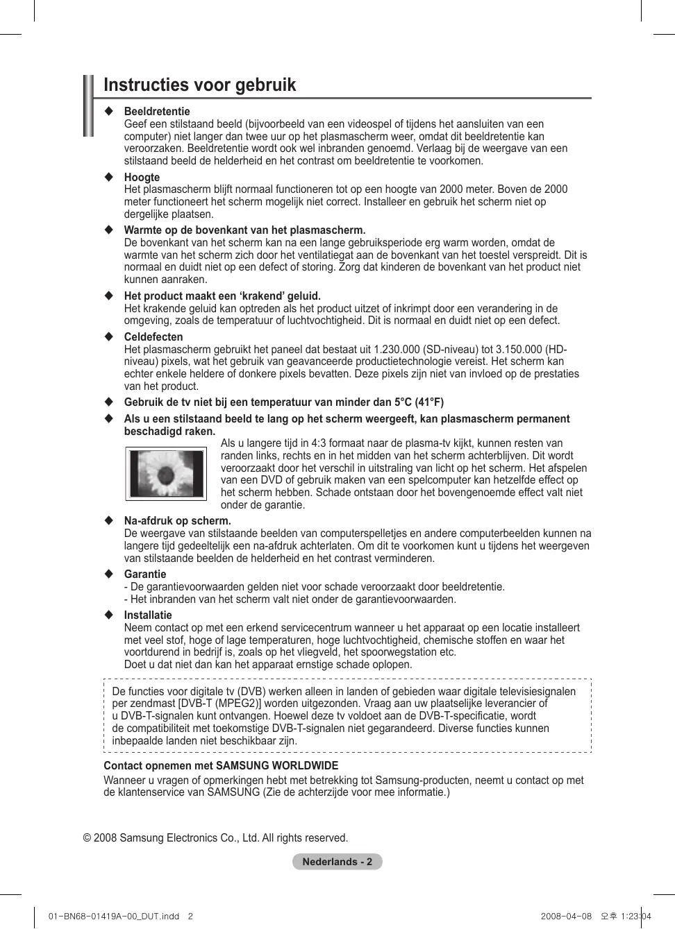 GEBRUIKSAANWIJZING PS42A416 SAMSUNG