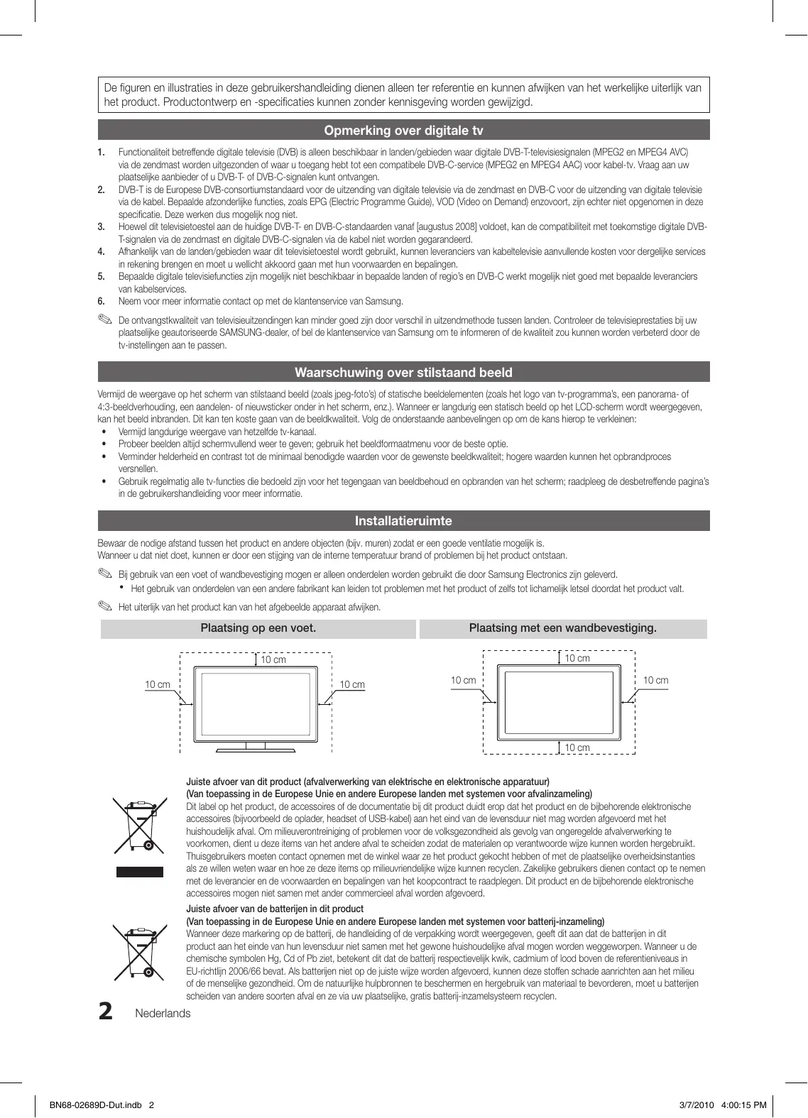 3/7/2010 2:54:40 PM Diese Seite wurde absichtlich leer belassen. BN68-02689BDJ-Ger.indb 50 3/7/2010 2:54:40 PM De figuren en illustraties in deze gebruikershandleiding dienen alleen ter referentie en kunnen afwijken van het werkelijke uiterlijk van het product. Productontwerp en -specificaties kunnen zonder kennisgeving worden gewijzigd. Opmerking over digitale tv