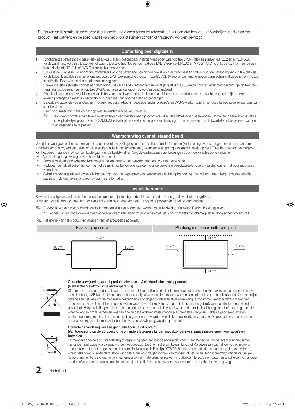 2010-03-02 오전 11:27:16 De figuren en illustraties in deze gebruikershandleiding dienen alleen ter referentie en kunnen afwijken van het werkelijke uiterlijk van het product. Het ontwerp en de specificaties van het product kunnen zonder kennisgeving worden gewijzigd. Opmerking over digitale tv