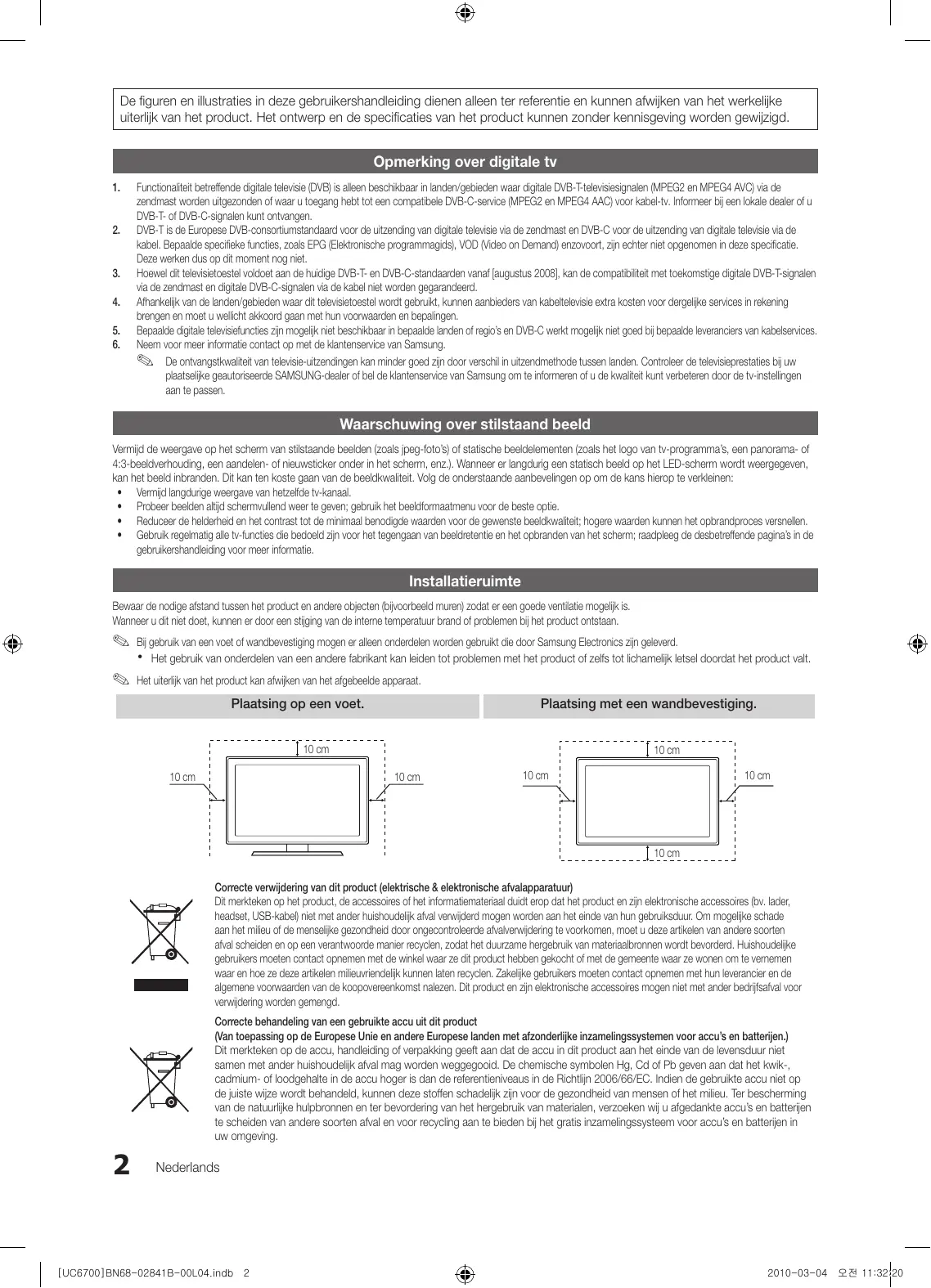 2010-03-04 오전 11:32:19 De figuren en illustraties in deze gebruikershandleiding dienen alleen ter referentie en kunnen afwijken van het werkelijke uiterlijk van het product. Het ontwerp en de specificaties van het product kunnen zonder kennisgeving worden gewijzigd. Opmerking over digitale tv