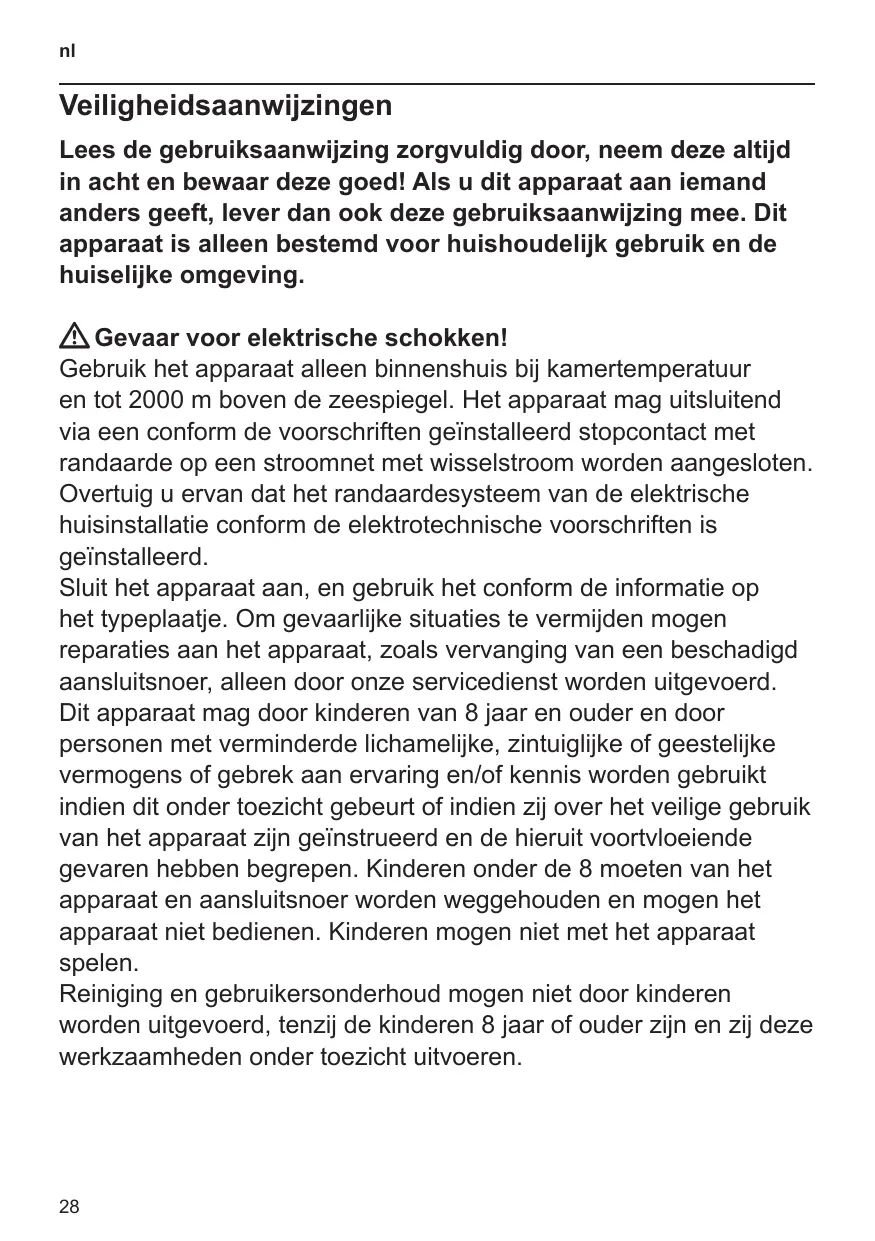 Serviciul nostru de Asistenţă pentru Clienţi, cu scopul de a preveni periclitările. Acest aparat poate fi folosit de copiii peste 8 ani şi de persoane cu capacităţi fizice, senzoriale sau mentale reduse sau cu insuficientă experienţă sau cunoştinţe, numai sub dacă sunt supravegheaţi sau dacă au fost instruiţi referitor la utilizarea în siguranţă a aparatului şi au înţeles pericolele care rezultă din această utilizare. Aparatul şi cablul de alimentare nu trebuie lăsate la îndemâna copiilor cu vârsta sub 8 ani. De asemenea, aceştia nu au voie să folosească aparatul. Copiii nu au voie să se joace cu aparatul. Curăţarea şi întreţinerea realizată de utilizator nu vor fi efectuate de către copii, decât cu condiţia ca aceştia să aibă vârsta de minim 8 ani şi să fie supravegheaţi.