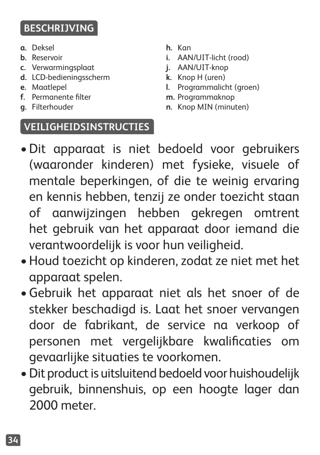 únicamente el asa de la jarra de cristal durante la fase de calentamiento y hasta que se enfríe. • Los niños menores de 8 años podrán utilizar el aparato siempre bajo supervisión, si han recibido instrucciones sobre el uso del aparato