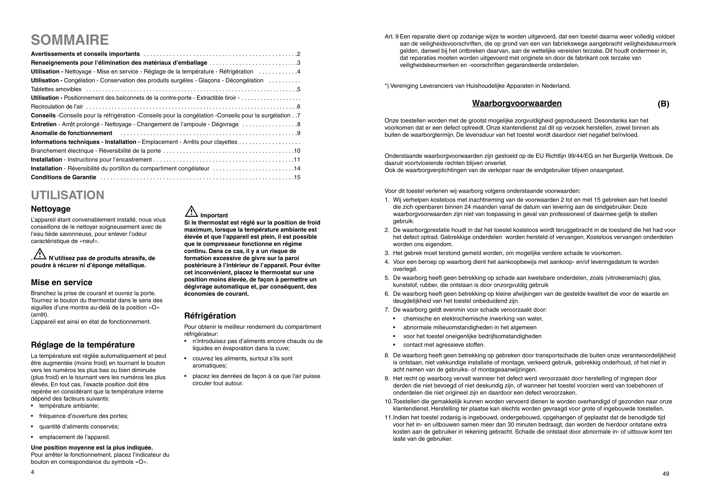 Ces conditions de garantie sont valables uniquement pour des appareils achetés et utilisés en Belgique. Pour les appareils exportés, l’utilisateur doit d’abord s’assurer qu’ils satisfont aux conditions techniques (p. ex. : la tension, la fréquence, les prescriptions d’installation, le type de gaz, etc.) pour le pays concernérespectif, et qu’ils supportent les conditions climatiques et environnementales locales. Pour les appareils achetés à l’étranger, l’utilisateur doit d’abord s’assurer qu ‘ils répondent bien aux qualifications requises en Belgique. Des adaptations indispensables ou souhaitée ne sont pas couvertes par la garantie et ne sont pas possibles dans tous les cas.
