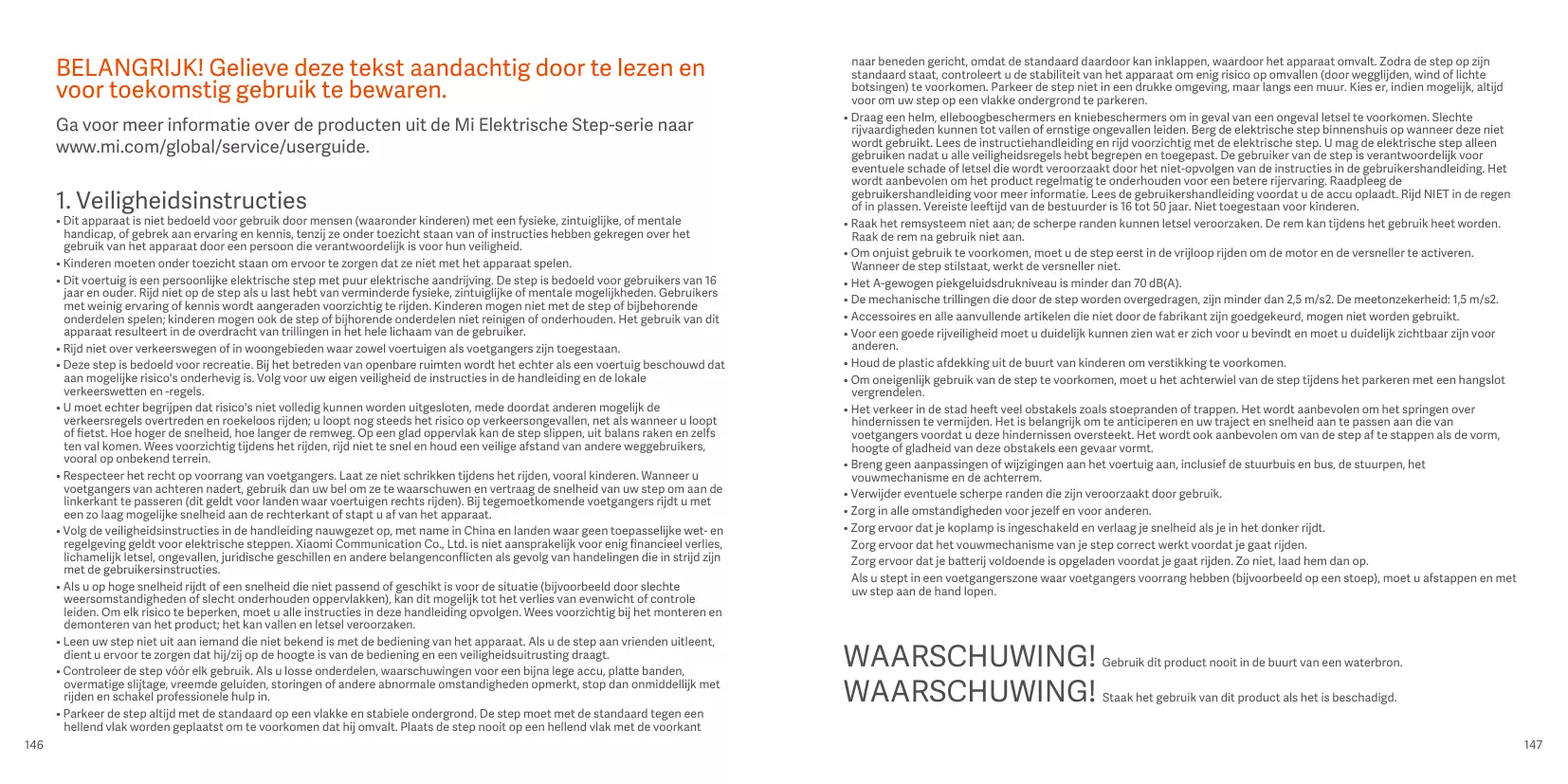 BELANGRIJK! Gelieve deze tekst aandachtig door te lezen en voor toekomstig gebruik te bewaren. Ga voor meer informatie over de producten uit de Mi Elektrische Step-serie naar www.mi.com/global/service/userguide.