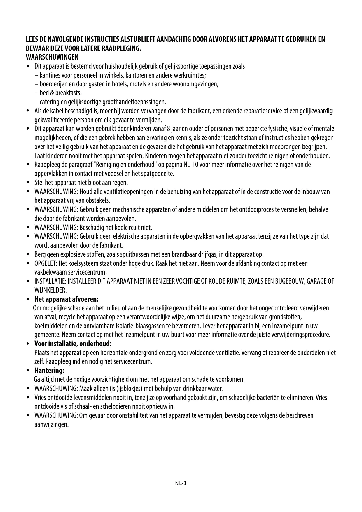 WAARSCHUWING: Gebruik geen mechanische apparaten of andere middelen om het ontdoopproces te versnellen, behalve die door de fabrikant worden aanbevolen.