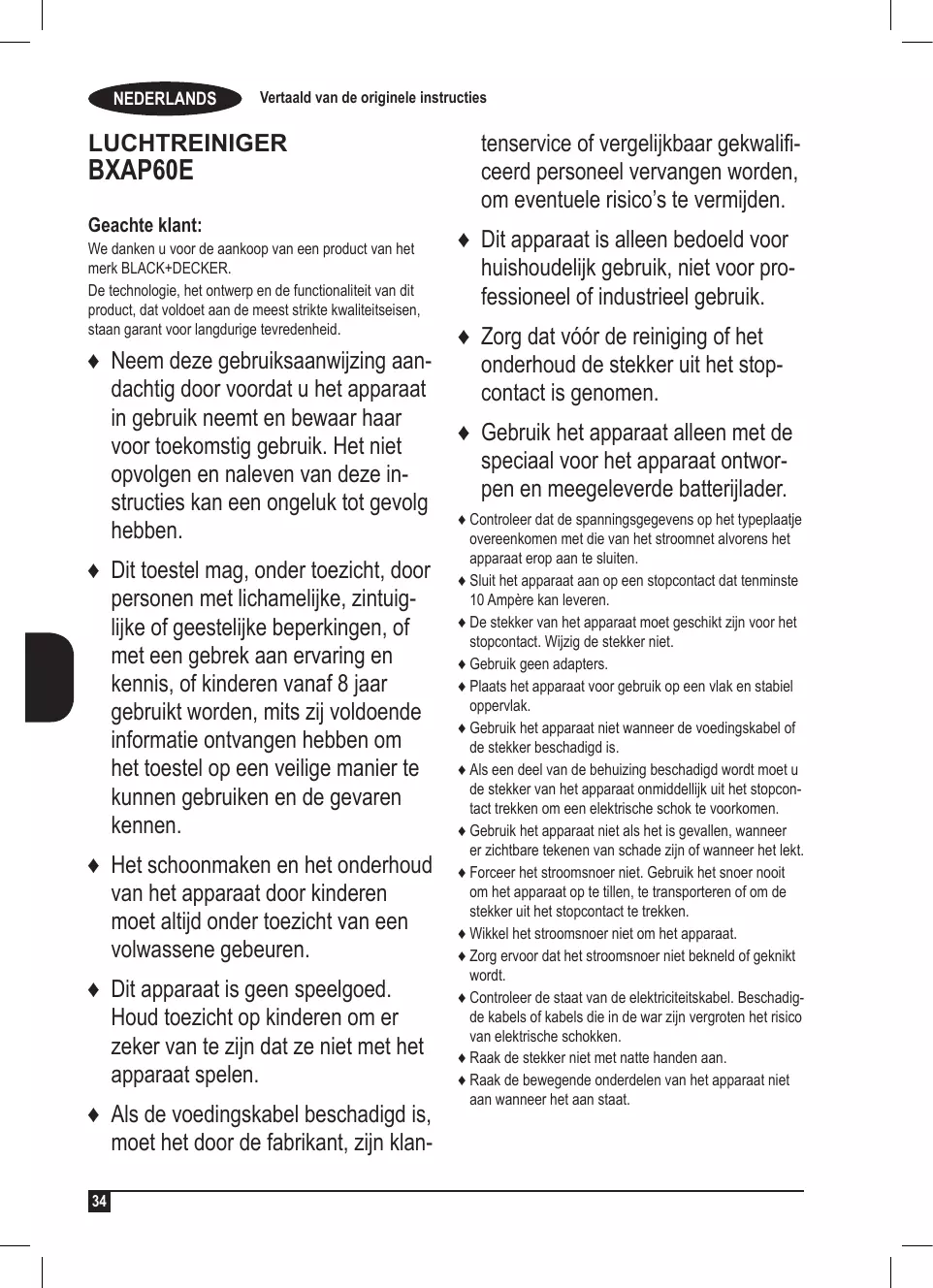 GEBRUIKSAANWIJZING BXAP60E BLACK & DECKER