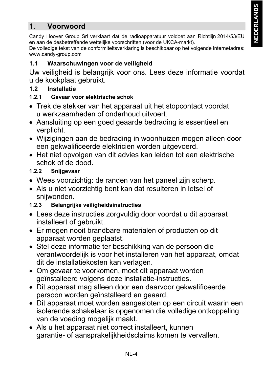 Uw veiligheid is belangrijk voor ons. Lees deze informatie voordat u de kookplaat gebruikt. 1.2.1