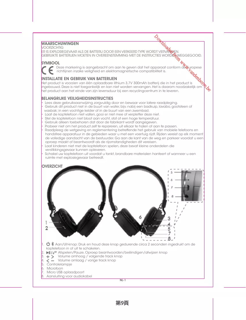 - Laat de koptelefoon nicht vallen, gooi er Niet mee of verplefter deze nicht.