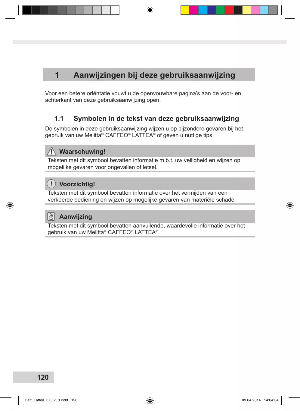 Aanwijzingen bij deze gebruiksaanwijzing120 1.1 1.2 1.3
