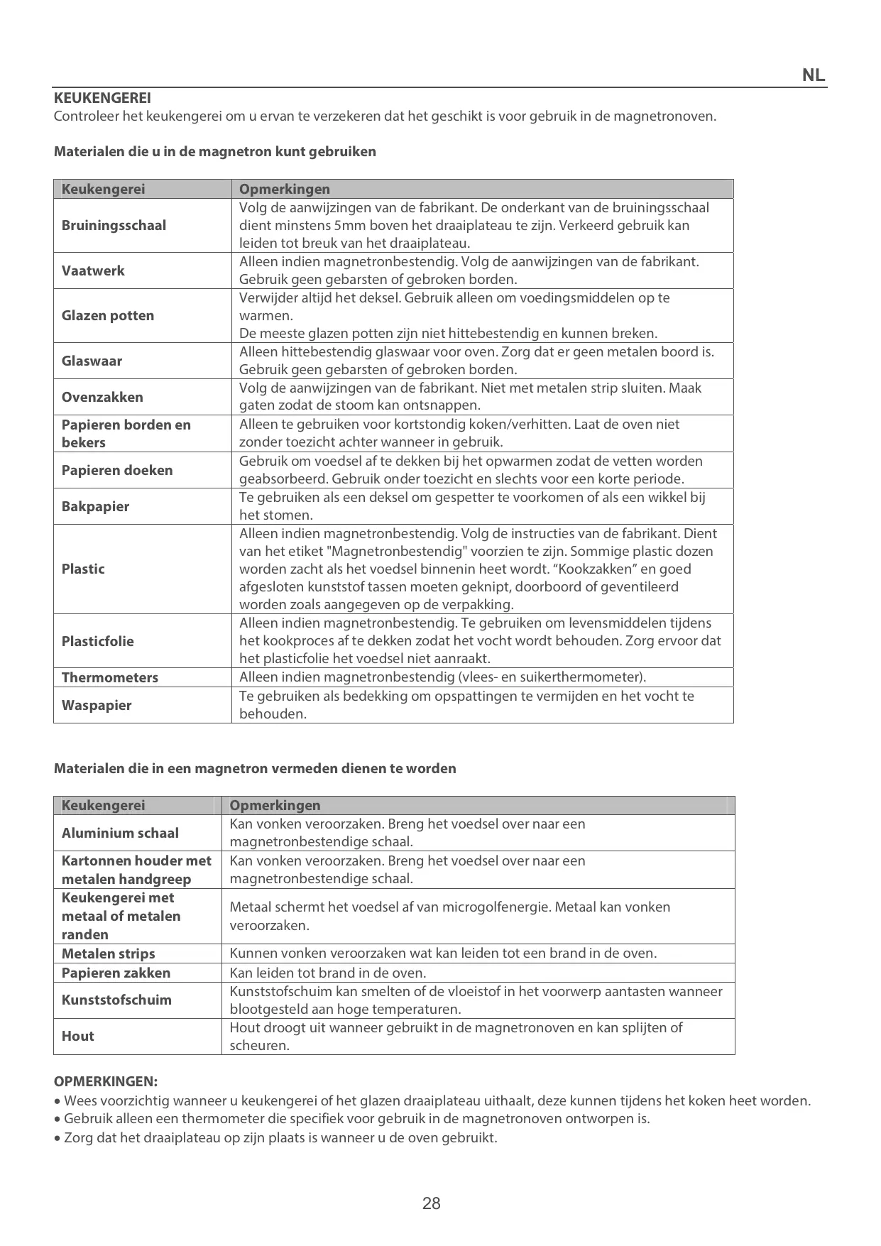 REMARQUES : xFaites attention lorsque vous sortez un plat ou le plateau rotatif en verre du four, car ils peuvent être devenus brûlants pendant la cuisson. xUtilisez exclusivement un thermomètre conçu pour une utilisation dans un four à micro-ondes. xVeillez à ce que le plateau rotatif soit correctement positionné dans le four pendant l'utilisation.