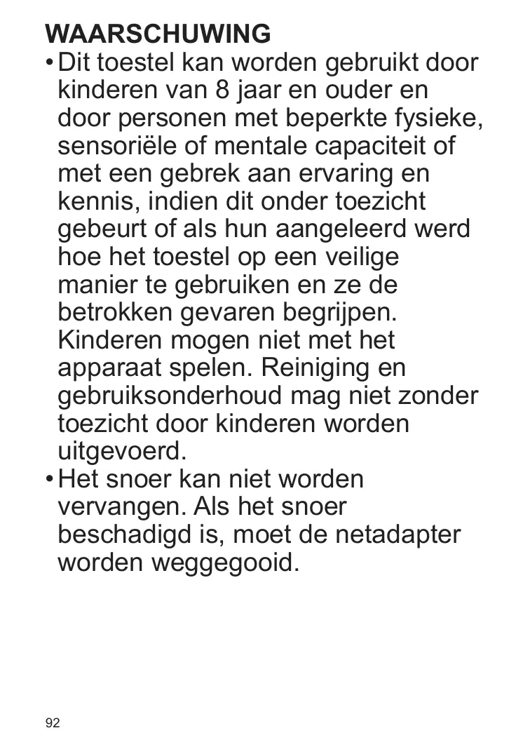 • Le cordon d’alimentation ne peut pas être remplacé. Si le cordon est endommagé, l’adaptateur CA doit être mis au rebut.